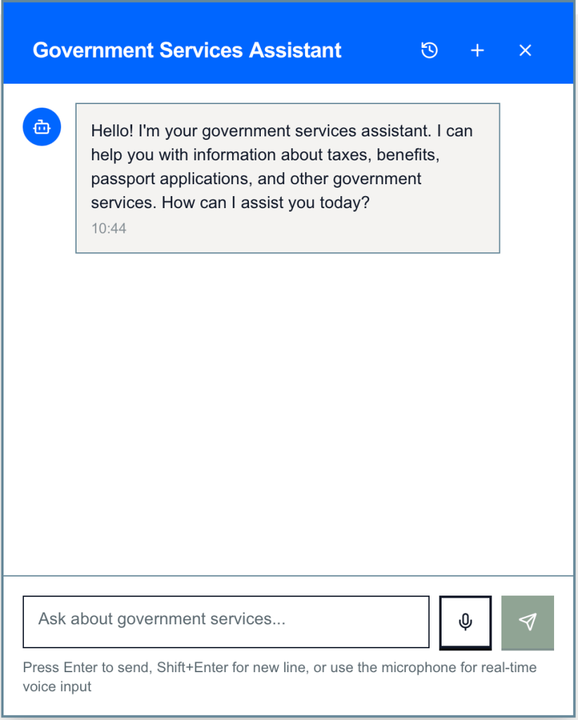 Eligibility checks, rules, audit trails, and accessibility compliance were integrated into the agent itself — ensuring safe, trusted journeys that remained aligned with departmental policy.